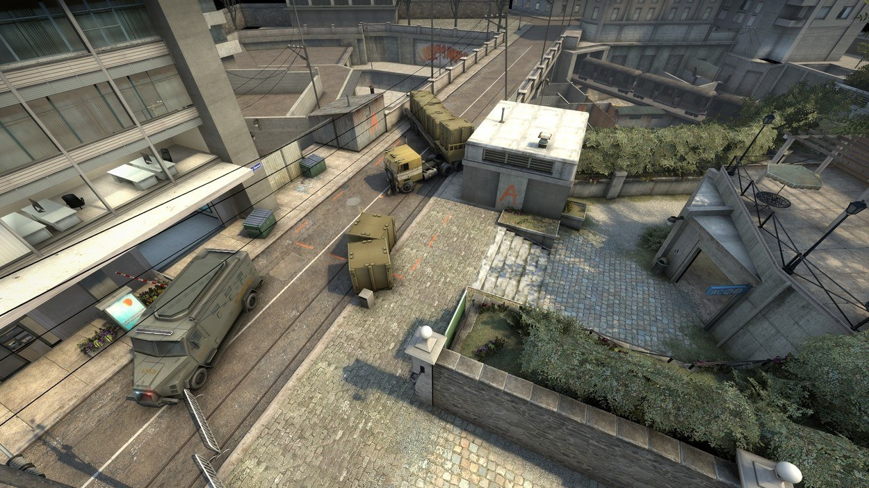 We also use an incendiary to force an enemy out of the extremely annoying position that is 'Truck'. Players can normally very easily hide behind Truck and can even deny a bomb plant from this position without being too exposed to other players. Clearing this location is quite crucial to a succesful A-site take. Finally, keep in mind that CTs will often also rotate by going up Connector to backstab you, so make sure to have a teammate watching the flank even before you plant the bomb. Many poor souls have been sent to the afterlife because an enemy pushed upon them while they were planting, even in pro games.