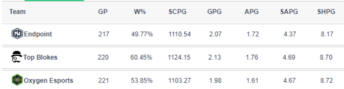 Despite a lower win percentage than each opponent and sub-par head-to-head stats (defensively compared to OXG and offensively compares to TB), Endpoint took down both en route to a semi-final finish, taking home a respectable $8,000 All statistics courtesy of octane.gg.
