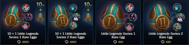 First off, we have the cheapest method of purchasing Little Legend skins. These Eggs contain one of three skins that come in different variations as well. You can evolve these skins from level 1 to level 3, but that'll require you to spend more money on these Eggs.