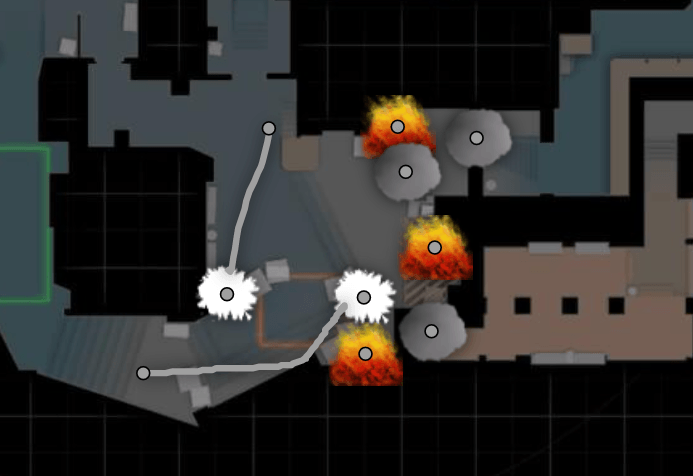 Utility usage example from Stairs (Incendiary to Ninja, Smoke to Palace without showing yourself).