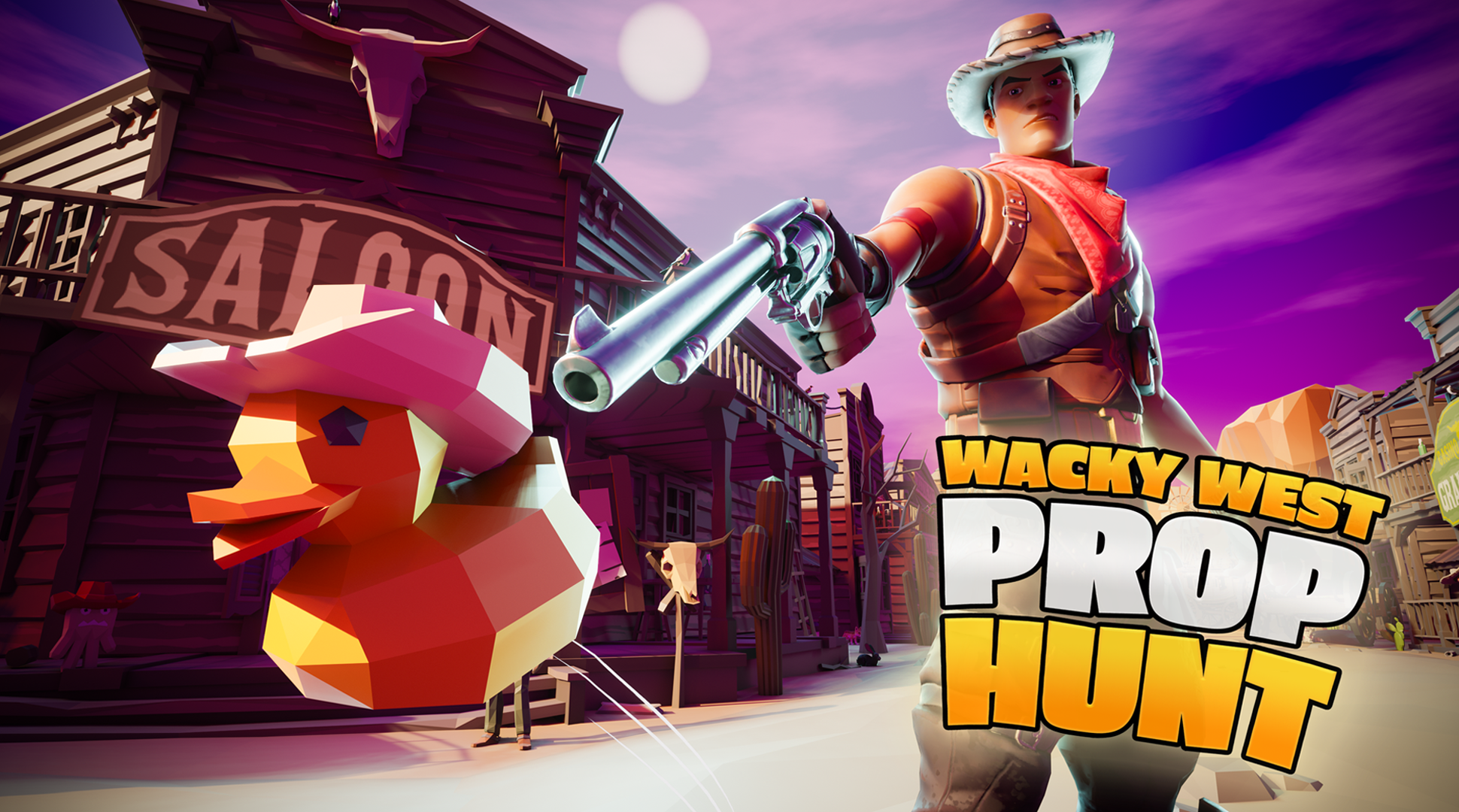 Take a walk on the wild side with Wacky West Prop Hunt! This map has been a longtime favorite of mine and has only improved since being upgraded using UEFN technology. With over 200 props to transform into, this map has silliness at every turn featuring animated animals & characters, a cowboy narrator, and endless hiding places to discover such as secret caves and much more.