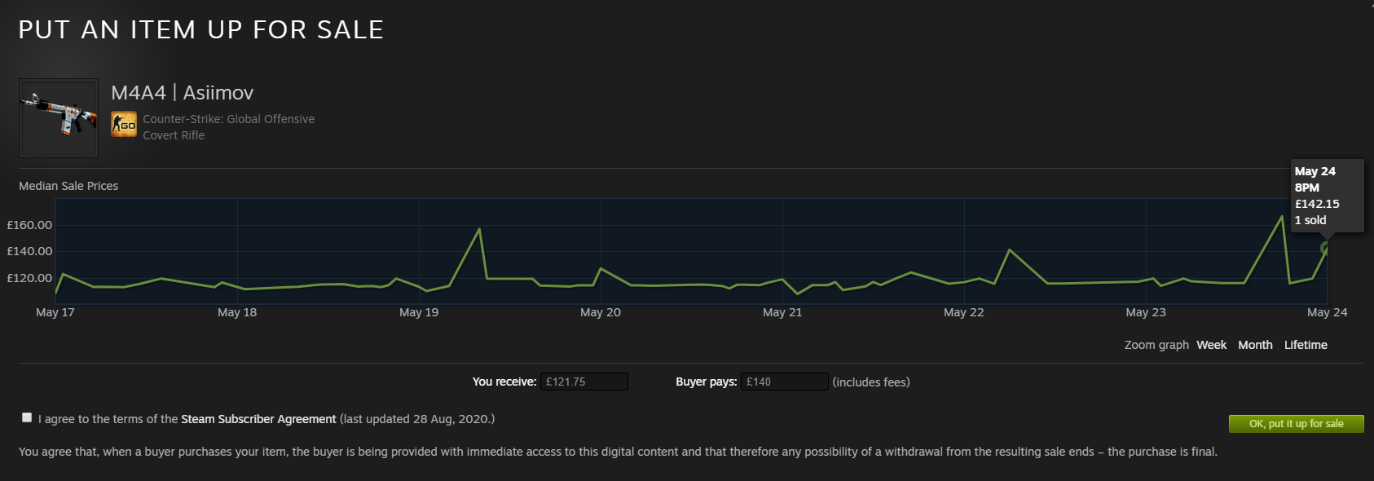 When selling an item on the Steam market, make sure to note the current buy order prices, as they might be very close to the current listing prices. Also make sure to utilise the sale history graph available when selling an item to make sure you sell for a good price, sometimes it is better to wait a while for an item to sell at a better price than it is to ‘quicksell’ at a lower rate.