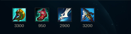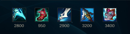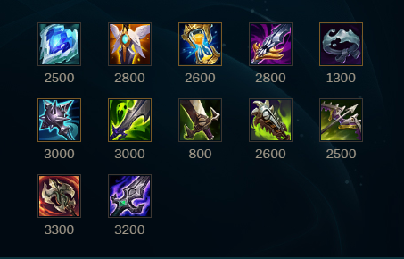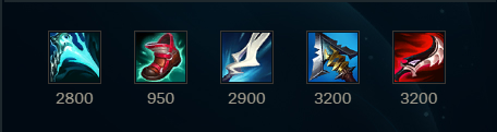 This build is quite different from all the builds discussed for various reasons. This build only has 55 ability haste compared to the other builds which can reach over 100 ability haste. However, the build trades the ability haste for high attack speed from Kraken Slayer and Guinsoo’s Rageblade. This build also has extremely low flexibility since only Lord Dominik’s Regard can be swapped out for Serylda’s Grudge in situations where you want the slow to kite enemy champions. If you must have one of the other situational items, most likely Lord Dominik’s Regard would be swapped out, but it may be better to use a different build that would allow more flexibility.