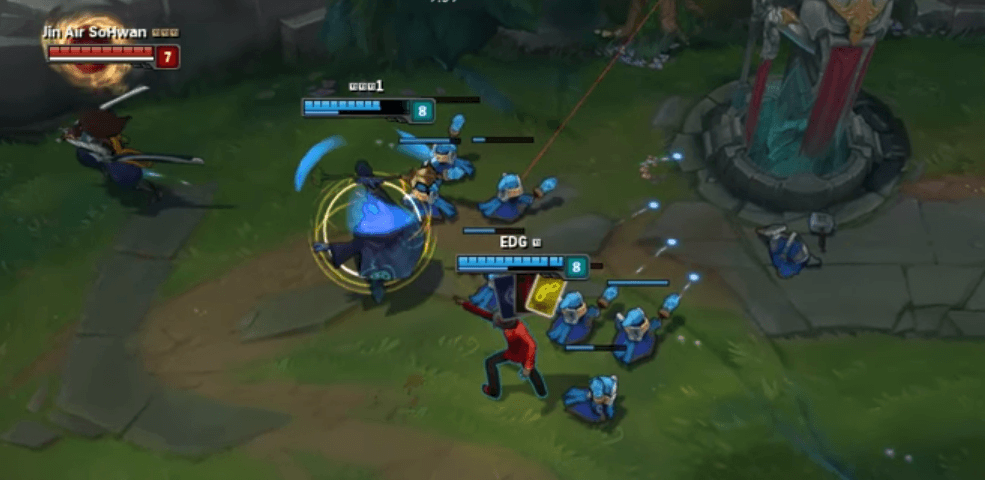 This essentially forces the enemy team to just cut their losses and turn around. If they try to fight this, with Jhin already in a bad position, they might end up losing even more champions and give up either the bottom tower or Dragon. The reason Red Team is even in this position is because they were setting up their own trap. Bot lane is pretty much even before this fight and this might have been the fight to really push one side ahead. This countergank is perfect in that it turns around the entire fight and shows how important it is to keep track of the enemy champion positions.