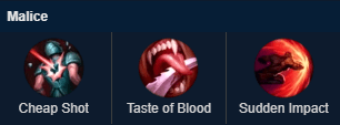 The first of the Malice line in the Domination path, Cheap Shot deals bonus true damage for any target that is movement impaired, like with stuns, roots, silence, etc. It’s important to know that the target must be impaired to deal the bonus true damage, the attack that impairs will not deal the bonus damage. Its cooldown is also super low at only four seconds.