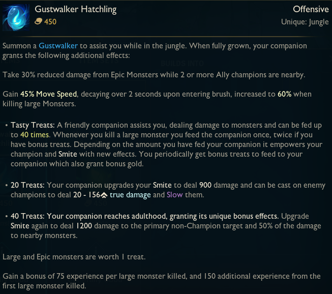 This item is usually taken by champions that require a fast setup and increased mobility, as it provides Move Speed when ganking, making this a must-have item for champions like Skarner or Hecarim.