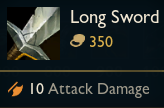 Long Sword and three Health Potions are a good choice in matchups that are usually melee vs ranged or ranged vs ranged, as they allow you to deal damage to your opponent and survive longer in lane. Nevertheless, a careful consideration should be made between choosing one of the other items detailed above and the Long Sword + 3 Health Potions combo, as although you can upgrade the LS into a different item, you will not receive the other stats that a Doran’s item would provide. If you feel like you do not need to kill your opponent and can win the lane by scaling, then this is the perfect choice for you.