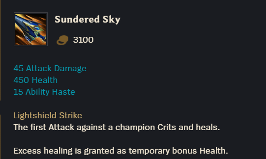 1. Sundered Sky: A core item for Vi, providing damage, healing, and a bit of HP bulk.