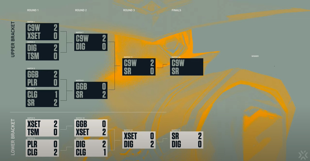 The eight teams fight for a winning streak, but only four teams can advance. Cloud9 White, Dignitas, Gen.G Black, and Shopify Rebellion will face each other in the semi-finals. However, a second chance is given to XSET Female, TSM Female, Polaris, and CLG Red.