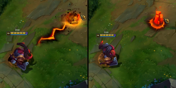 Ornn’s terrain building move is pretty small, and barely noticeable compared to most of the others in this list, but that doesn’t mean it’s any less useless. After a slight delay as the pattern travels along the ground, Ornn will make a pillar of stone that erupts out of the ground. It combos well with his Searing Charge, like every other wall, but is narrower than Trundle’s and a bit less likely to cause pathing issues on its own.