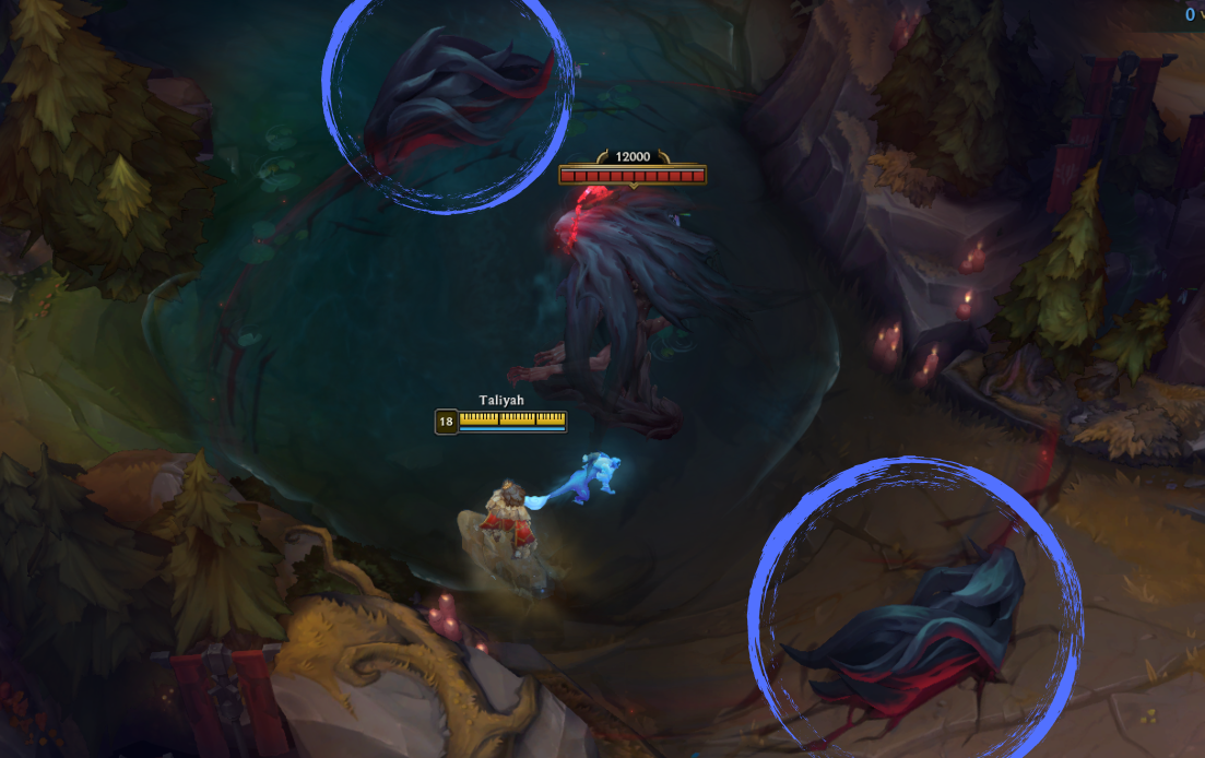 The barriers in the pit create a near-circular shape with the river walls, providing nearby laners with a feeling of safety against junglers without wall-jumping or wall-walking skills. The removal of the pixel brush near Atakhan’s spawn limits the paths available to most junglers, making some gank pathing more difficult and giving laners a sense of ease. Make sure that you plan your gank paths around this pit spawning, or you might find yourself cornered!