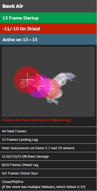 Wolf’s back air is an attack that lasts for 44 total frames. During frames 13 to 15, it will be “active” meaning it is capable of dealing damage. If you land on frames 16-18, whether you hit your opponent or not, you will have 15 frames of landing lag to wait through. If you land during frames 19 onwards, however, you will have auto cancelled the attack and only have 4 frames of landing lag.