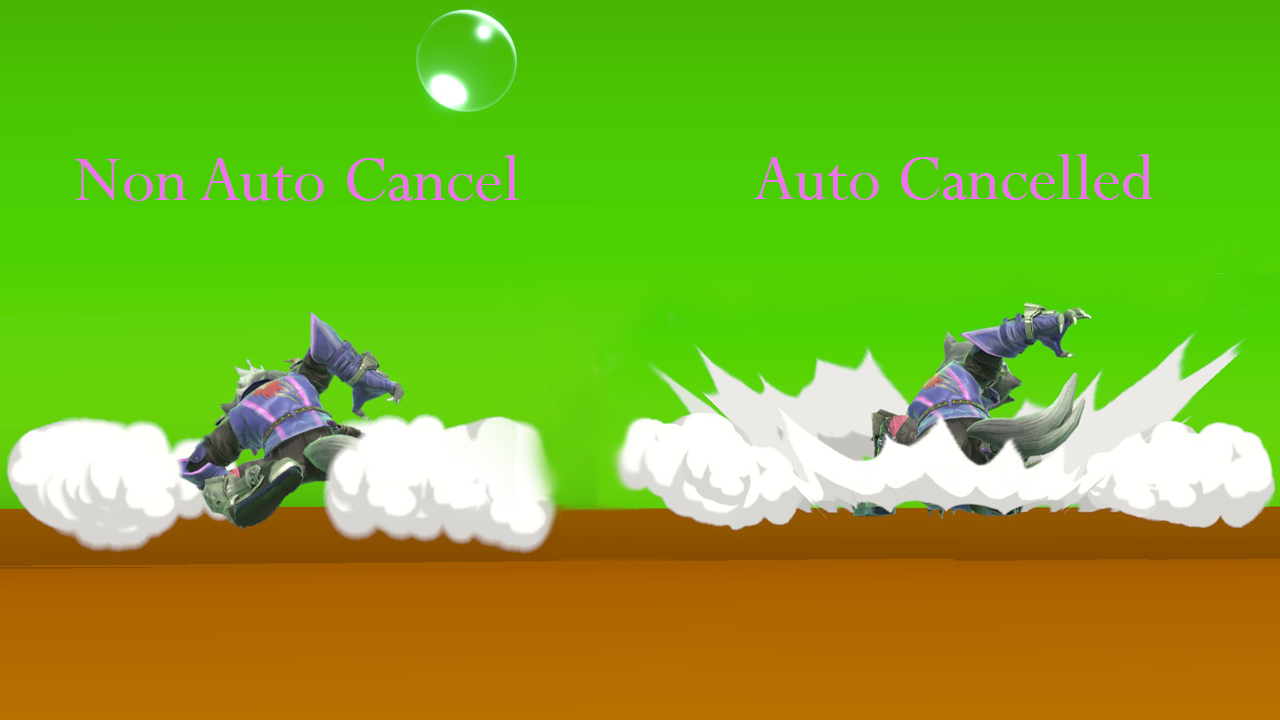 In addition, the game has a visual cue that lets you see if you’ve auto cancelled the move. When a move lands with regular landing lag, you will see smooth, rounded smoke rise into the air. When successfully auto cancelled, however, the character will have a spikey smoke rise up around them as well. If you want to use this indicator, however, we recommend going to a stage like Hanenbow, as its bright green background will contrast with the white smoke.