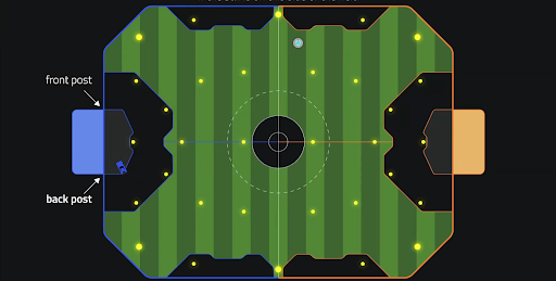 Rotating front-post rather than back-post is one of the most common mistakes you see at every rank in Rocket League. Even the pros sometimes get caught trying to cheat the play, and they get punished for it. The back-post, for those who do not know, is defending from the opposite post of the goal the ball is on. When you are coming back from the attacking zone into the defensive zone, rotating to the back-post allows you to cover the most surface area of the goal as well as take a winning angle on a challenge. Pictured below, you will see an example of what it will look like when you need to rotate back-post. Rotating back-post is a very intricate and crucial aspect of the game, and takes lots of studying to truly grasp. My favorite in-depth guide on rotating back-post comes from Wayton Pilkin, whose video can be watched here.