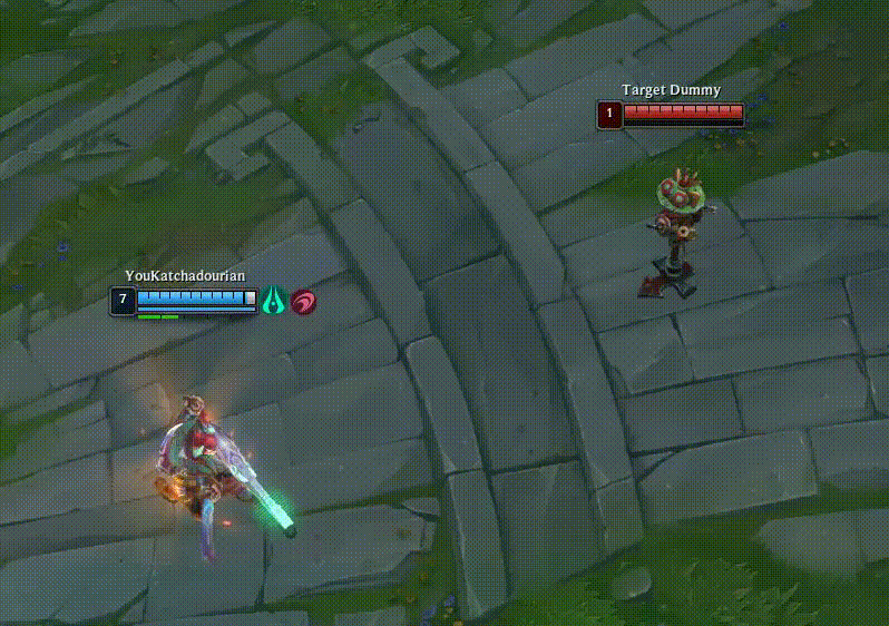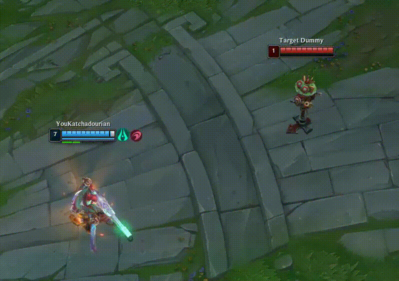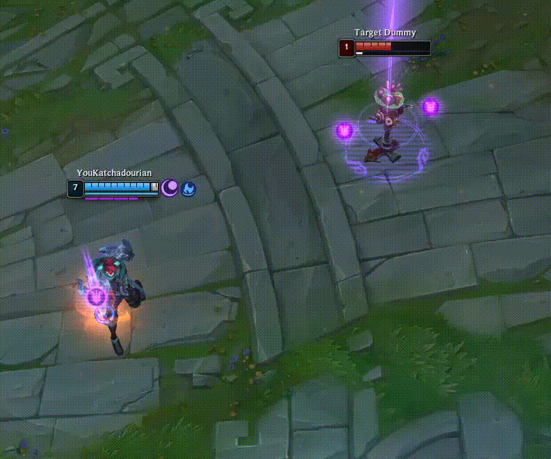 Calibrum is used for harassing and poking as it gives your auto attacks increased range. This weapon also allows you to mark enemies. When you right-click a marked enemy, your off-hand weapon is used to attack. Your Q for this weapon, Moonshot, fires a skill shot that damages the first unit hit and marks them for a long-range attack that utilizes his off-hand weapon. The Calibrum ultimate allows follow-up attacks to mark all enemies hit. These marks deal higher damage when you attack them.
