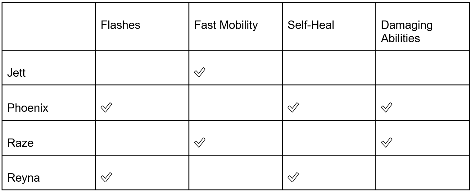 The 4 duelists that are easy to learn are Phoenix, Reyna, Raze, and Jett. There is a fifth duelist, Yoru, but he has a distinct playstyle, and his abilities are very difficult to use effectively.
