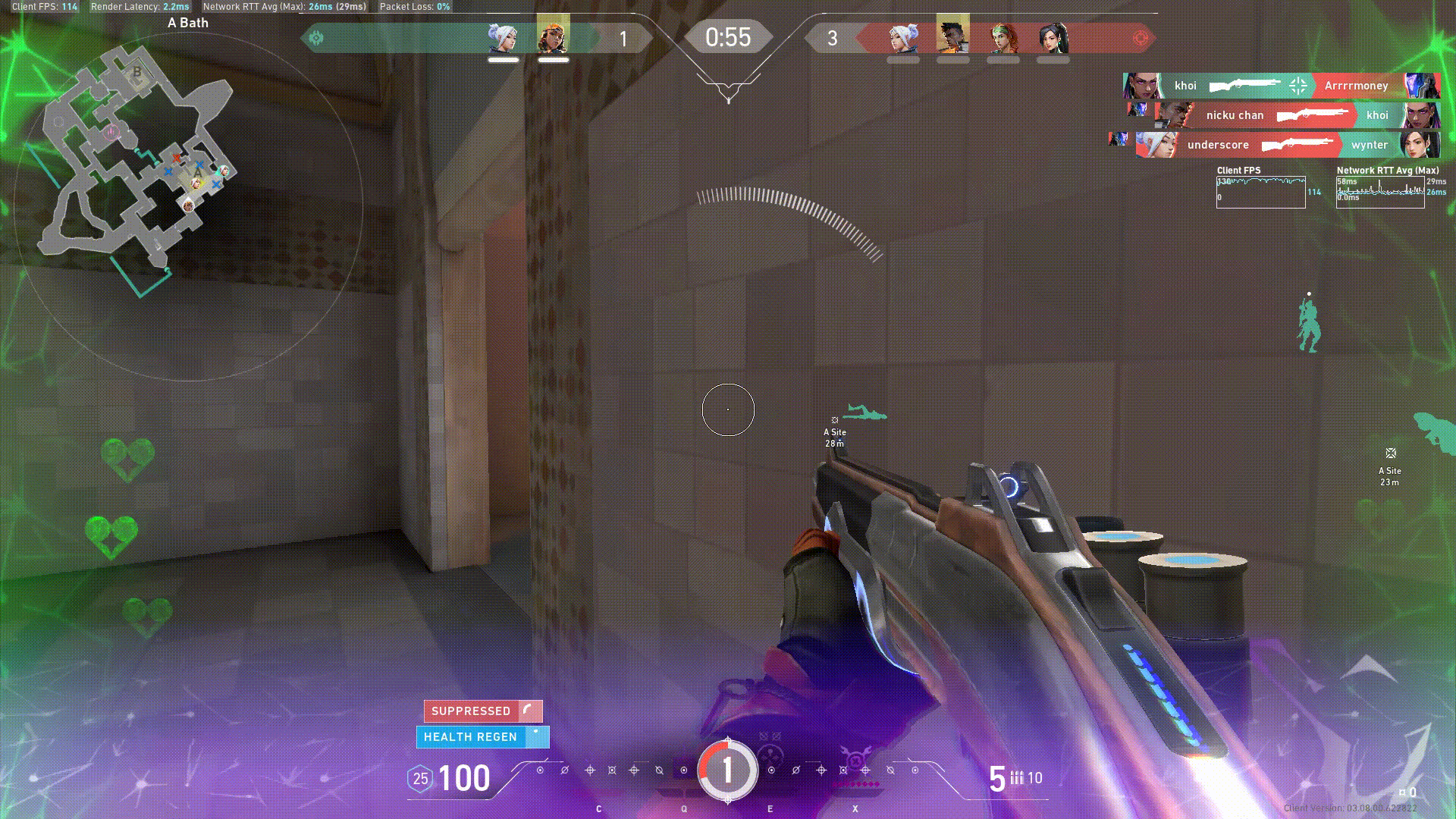 All of his abilities besides his ultimate are projectiles like CSGO. He has a Frag/ment that acts like a Molotov and two flashes. They can be used in ways that CSGO players should be accustomed to. KAY/O’s ultimate gives him a 10% fire rate boost, 40-meter radius suppression pulses, and if he gets shot, he will only be downed instead of being killed. This lets him push confidently without worrying about enemy abilities and knowing his teammates can usually restabilize him if he’s shot. As an initiator agent, KAY/O’s role is to provide supporting utility, like flashes, and information for his team to make attacking easier for the entry fraggers.