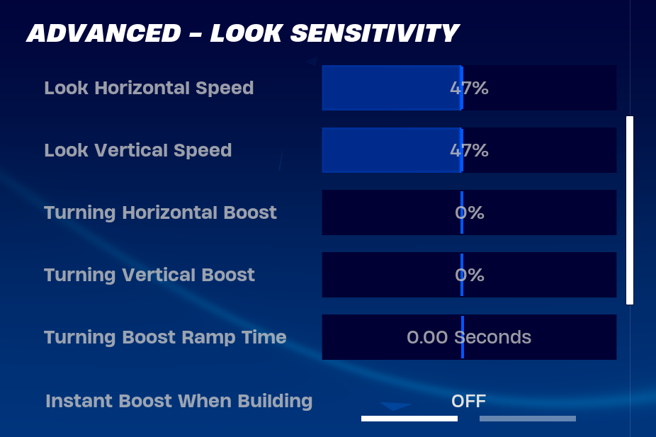 To configure your sensitivity, first, you have to turn on Advanced Options in the Sensitivity section. Once done, you will see new settings, these settings offer more control over your sensitivity and should be used instead of the Look Sensitivity. However, do configure the build and edit sensitivity. A good range for both is 1.5x - 2.2x. Apart from that, use the following settings.