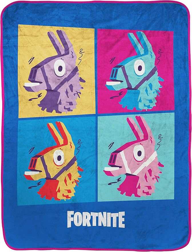 This soft travel blanket features Fortnite's iconic supply llama design, perfect for gaming sessions or adding a decorative touch to any space. Measuring 40 x 50 inches, it’s easy to care for and machine washable. Ideal for fans who want to stay cozy while playing or watching their favorite Fortnite streamers.