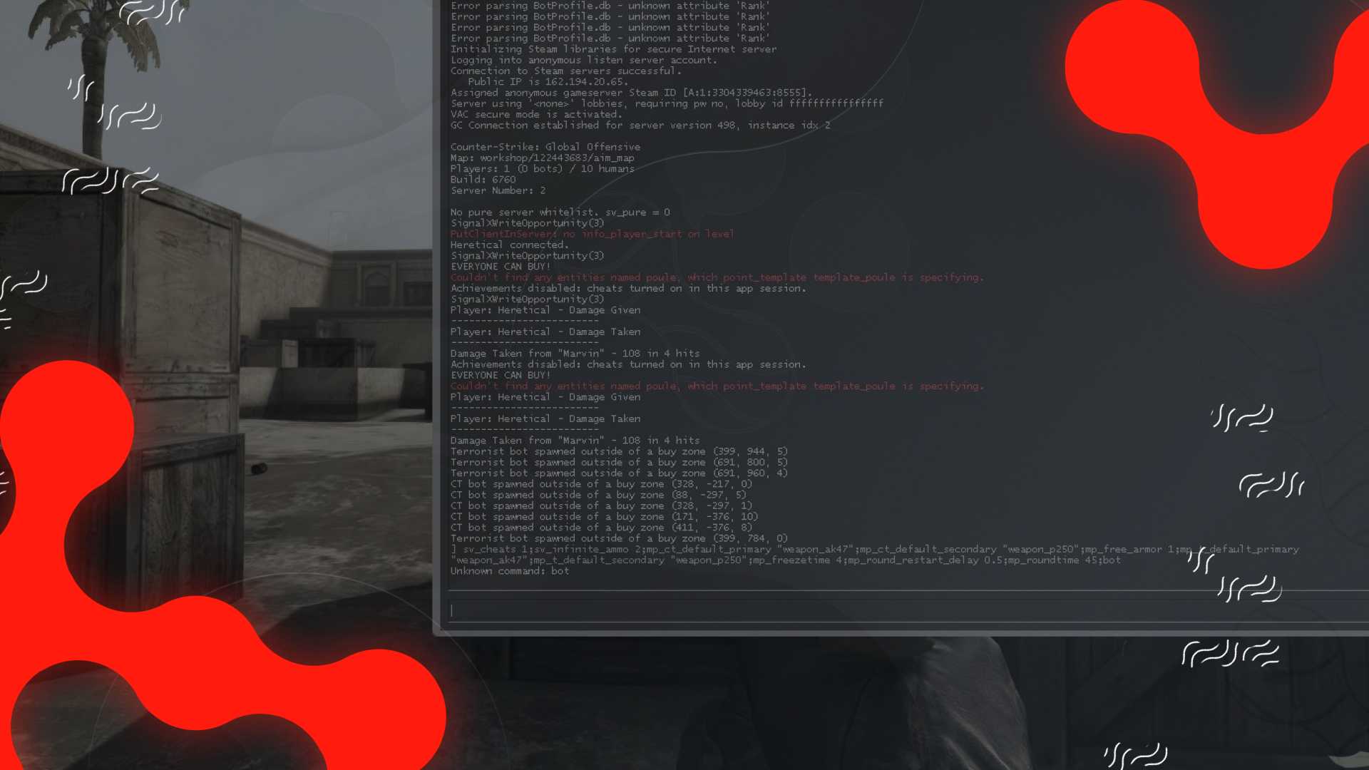 With the commands provided you’ll have unlimited round time so you won’t be bothered by round restarts, no freeze time, max money so you can buy whatever you want, infinite ammo on every gun and infinite utility and you’ll even be able to see the trajectory of the all the grenades you throw for a few seconds!