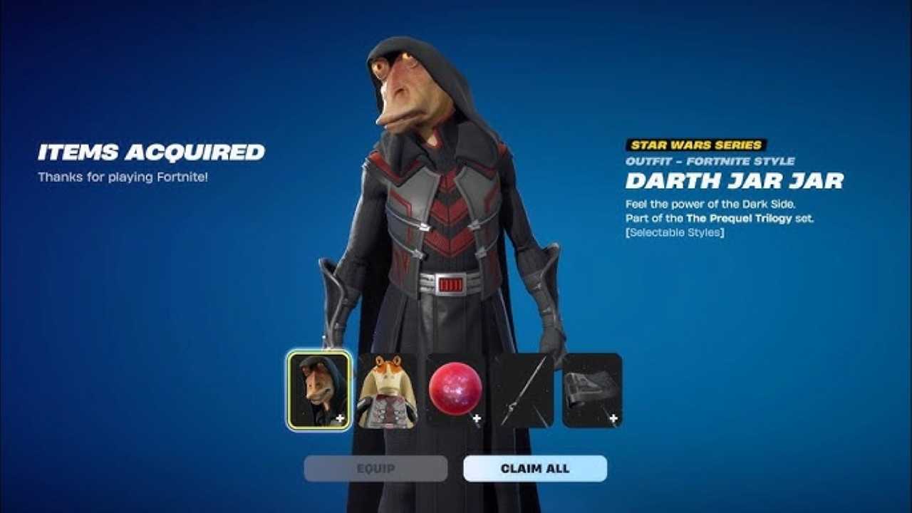 We’ve seen many iconic Star Wars characters grace the battlefield on Fortnite. However, fans went wild to see the widely theorized Darth Jar Jar finally come to life in the game. The Darth Jar Jar character has been a figure of myth from the galaxy far, far away for a very long time.