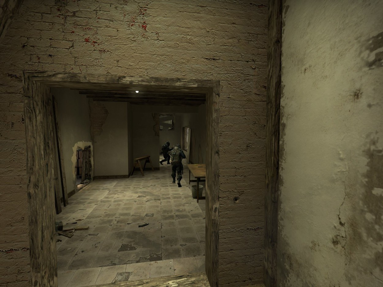 Be particularly mindful when deciding to fall back to another position after you have pushed and made sound on one. If you start running too soon during your retreat you might give the enemy the auditive cue that they should distribute their forces elsewhere. But even after you have moved outside of hearing distance, unless one of your teammates has cleared the area you're passing through, you should tiptoe your way back to make sure that if one of your enemies pushed up to catch you off-guard, at least he won't be given the warning that you're approaching. For example, if you're in Apartments on Mirage and want to fall back to push the attack on A, it could be possible that one of your enemies has pushed up middle. Not only will your footsteps give him important information that blows your team's cover, he is also in the perfect position to launch a surprise attack and take you out alongside a couple of your friends.