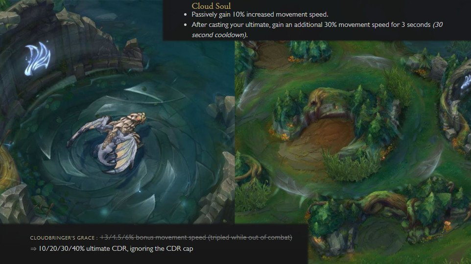 The Cloud Drake has changed to deliver more of an aggressive punch to the wielder of the buff than ever before. Where previously the buff would give an increase in movement speed, the new version grants Ultimate CDR%, even ignoring the CDR cap, so that fights can be picked more frequently by the owner of this powerful buff. Players who manage to get to 40% ultimate CDR will be put into a position of power that the enemy team will struggle to match, as they effectively get to decide when the next fight will be based on their cooldowns.