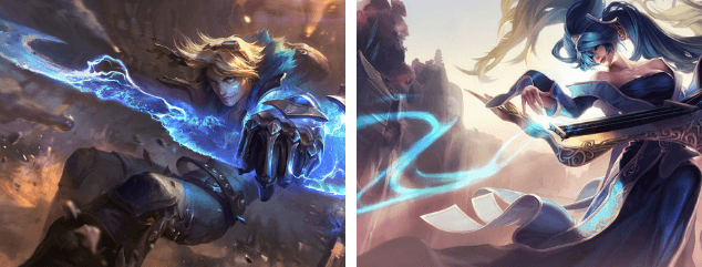 Ezreal and Sona work well with each other because of how well their ultimate works. Sona is a poke champion that offers various buffs depending on which ability she activates. Sona's Q, Hymn of Valor, will always target the two closest enemies (preferring champions) and giving allies deal bonus magic damage on their next attacks. Sona also offers sustain with her W, Aria of Perseverance, and movement speed with her E, Song of Celerity. The beauty of this comp is when they use their ultimate together. Sona's ultimate, Crescendo, stuns enemies, allowing Ezreal to line up his ultimate Trueshot Barrage.