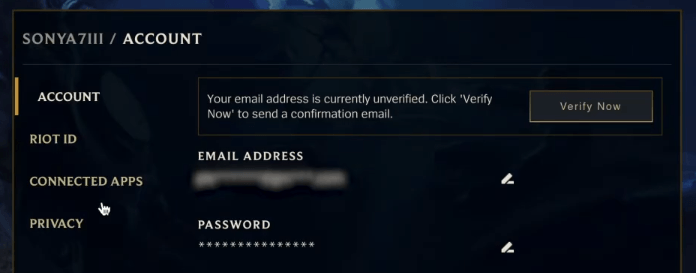 First go to account.riotgames.com and log in using your existing Riot Games account. This is the same information you use to log in to your League of Legends client. Once you log in, you should see your account credentials.