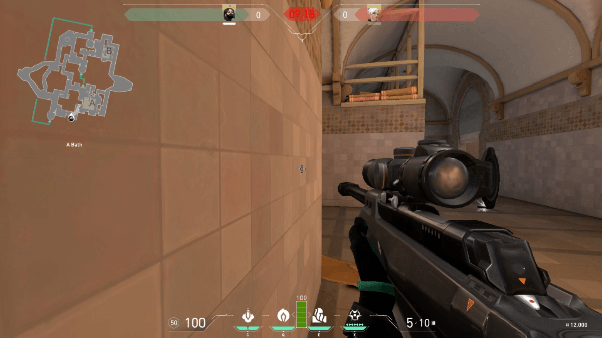 On offense, your best way to get some kind of advantage in this choke would be to throw in some type of projectile (Think Sova’s Recon Bolt or Raze’s Paint Shells) to either reveal your adversary’s location, or force them out of hiding with a potential burst of damage from behind cover. Since you’re going to be closer to the angle here, your opponent will have the jump on you regardless of how quick you are to shoot. You’ll need some sort of boost from either your kit or one of your teammates in order to get to a better position.