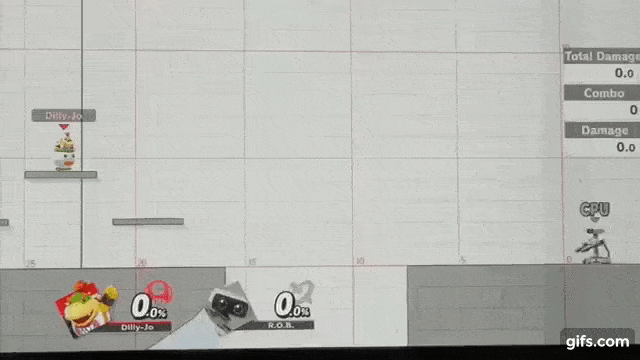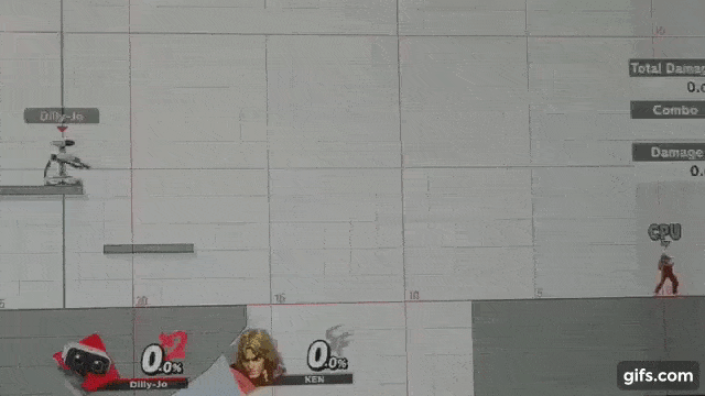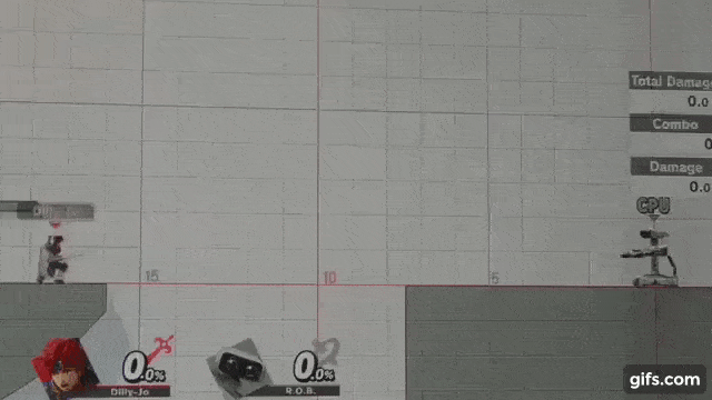 R.O.B.’s Up-B, Robo Burner, is incredibly useful while recovering. It travels a respectable amount of distance, and R.O.B. maintains a lot of control of his aerial mobility while using it. He can halt and continue his upward momentum (indicated by him lowering and raising his arms), and if he uses an attack midway through his Up-B, he will be able to continue with his Up-B afterwards. Eventually he will run out of fuel and his Up-B will end, but even after this point he is not helpless, and he can utilize an air dodge if necessary.