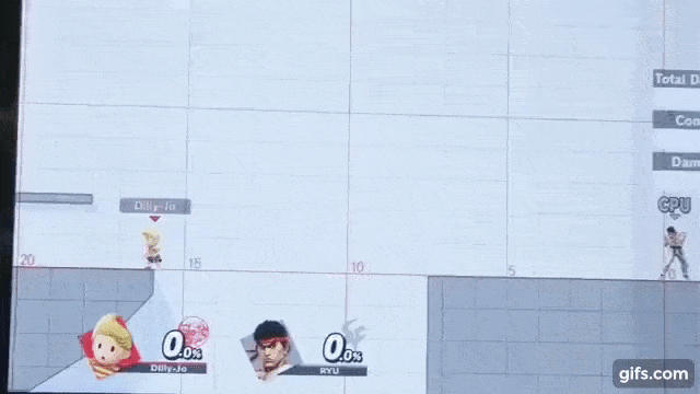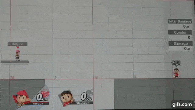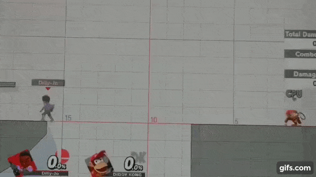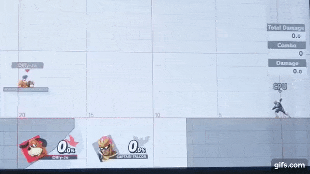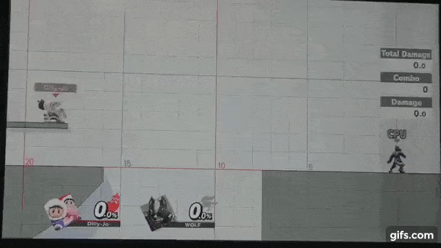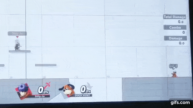 Duck Hunt’s Up-B, Duck Jump, functions similarly to those of Olimar and Villager. Duck Hunt has a great deal of control over his trajectory while flying with this move. The move can also be canceled with an aerial attack at any time, although Duck Hunt will become helpless afterwards. Duck Hunt is also able to wall jump, supplementing his already strong recovery.