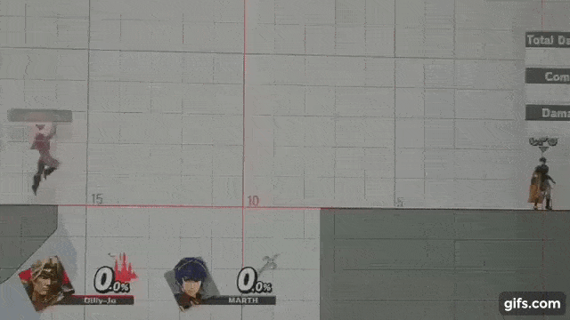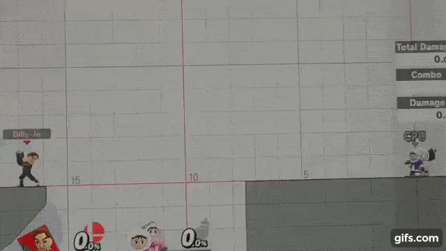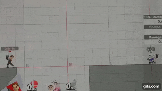 In the second set, Mii Brawler’s Up-B, Helicopter Kick, provides an acceptable amount of horizontal distance, with less impressive vertical distance. His Side-B, Burning Dropkick, provides a great deal of horizontal distance, as does his Down-B, Feint Jump. While less significant, his Neutral-B, Flashing Mach Punch, does stall him for a bit in the air, allowing it to be functionally similar to a shine stall.