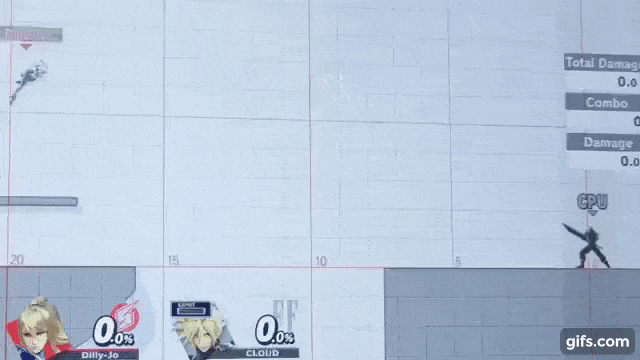 Cloud’s only recovery move is his Up-B, Climhazzard. In addition to its rising hitbox, the move has an optional falling hitbox which can be used to fall to the ledge (of course, using this offstage is suicide). Because his recovery options are limited, Cloud benefits from the ability to wall jump, and may find it useful to air dodge in order to provide some horizontal recovery. Once his Limit Gauge is fully charged, Cloud’s Up-B becomes a much more effective recovery tool, although Cloud generally does not want to be forced to waste his Limit on a recovery when it could be used as a kill option instead.
