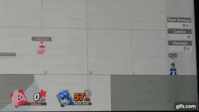 With five midair jumps at his disposal, Kirby has little trouble recovering. On top of this, his Up-B, Final Cutter, provides a decent amount of vertical distance and can snap to the ledge from above with its falling hitbox or from below with its rising hitbox. Kirby can use his Down-B, Stone, to fall quickly and change where he recovers from, although this is generally unnecessary for him to return to the stage safely. Note also that Kirby can use his Neutral-B, Inhale, to copy the Neutral-B of his opponent, which could improve his recovery depending on who his opponent is.