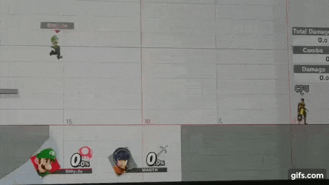 Luigi’s Up-B, Super Jump Punch, only travels vertically, as opposed to Mario’s diagonal Up-B. For this reason, Luigi must use his Side-B, Green Missile, to work his way closer to the stage before he can afford to Up-B. Like Pikachu’s Side-B, Green Missile can be charged in order to travel further. If Luigi uses his Side-B immediately after a jump, he will gain a slight vertical boost. In addition, there is a 10% chance that Luigi’s Side-B will Misfire, in which case he travels much farther, and will deal much more damage to any opponent he comes in contact with.