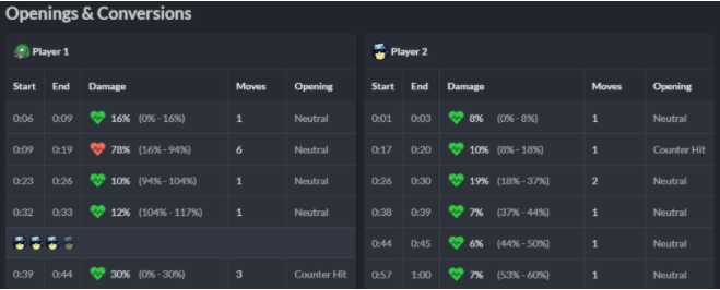 As I mentioned a little earlier, in addition to allowing you to watch replays, the Slippi Desktop App also does a stats break down on different aspects of the game such as conversions out of neutral, the strength of your conversions, inputs per minute, and a bunch of other stuff. While this isn’t exactly gleaning information off of your replays, it provides hard numbers for your game, which will help you narrow down key points to focus on in your matches.