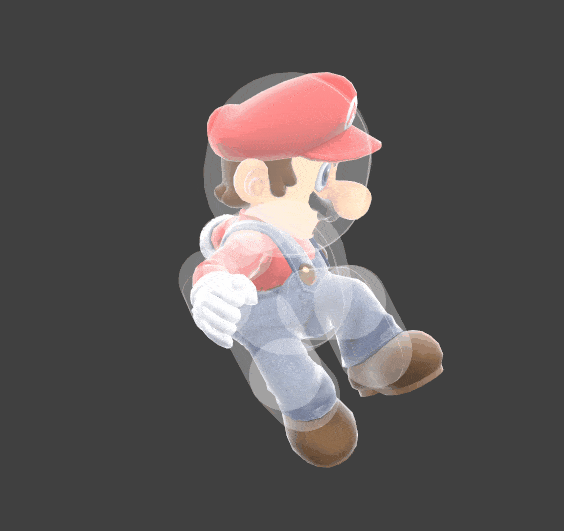 Forward Air: This is one of Mario’s slowest attacks, coming out on frame 16. It is an infamously powerful meteor smash guaranteeing a KO past 45%. Only the sweet spot spikes, but luckily Mario is able to finish a lot of his combos with it. His combos also have a lot of horizontal carry potential, thanks to back air and neutral air, so Mario has no trouble getting his opponents into position for a stock ending spike. Forward air can also be used to approach from a full hop, but its long ending lag makes it less ideal and riskier than the other moves in his kit.