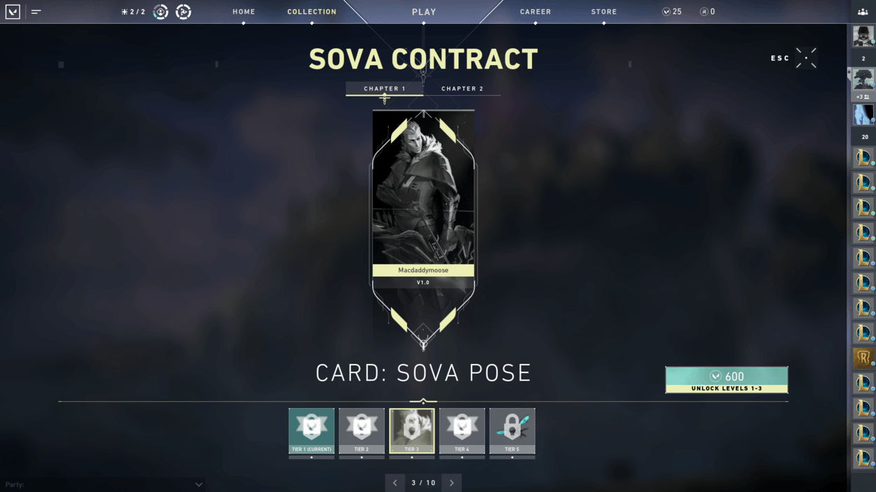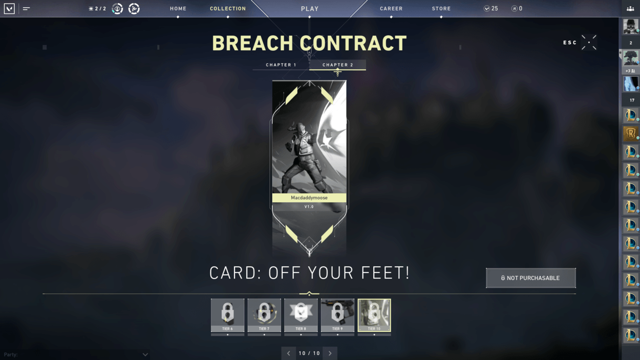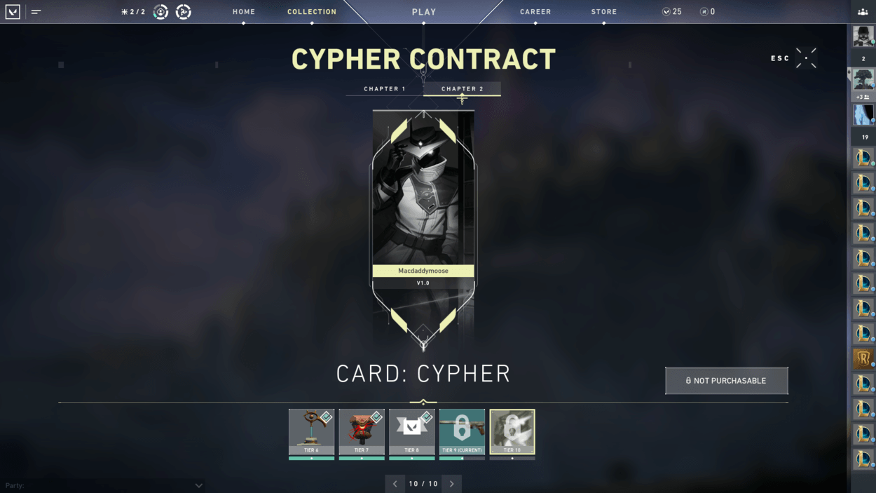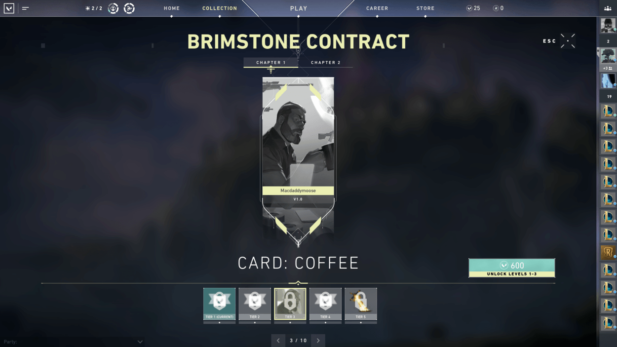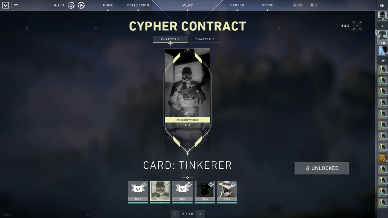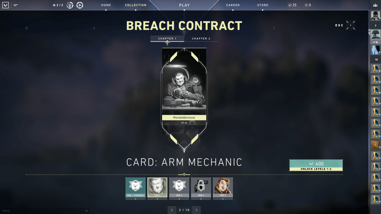 Now when getting to work on the contract, each of the Agents have ten tier rewards that are specific to each of them. The reward tiers are as follows: