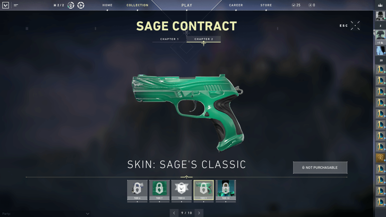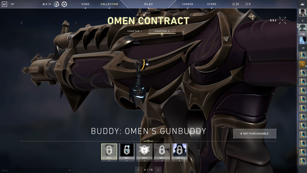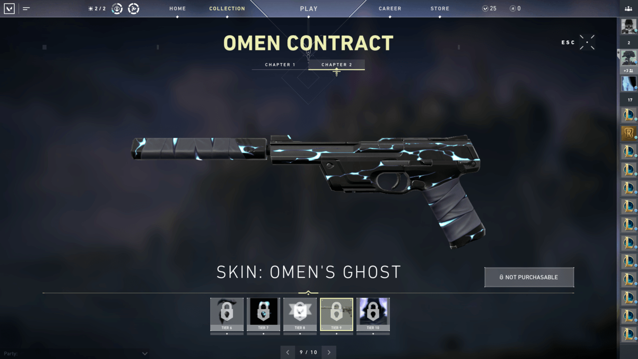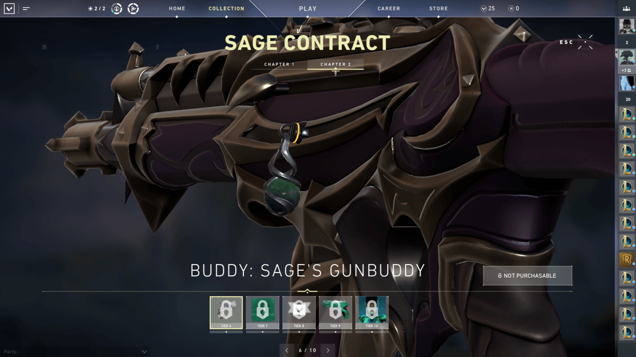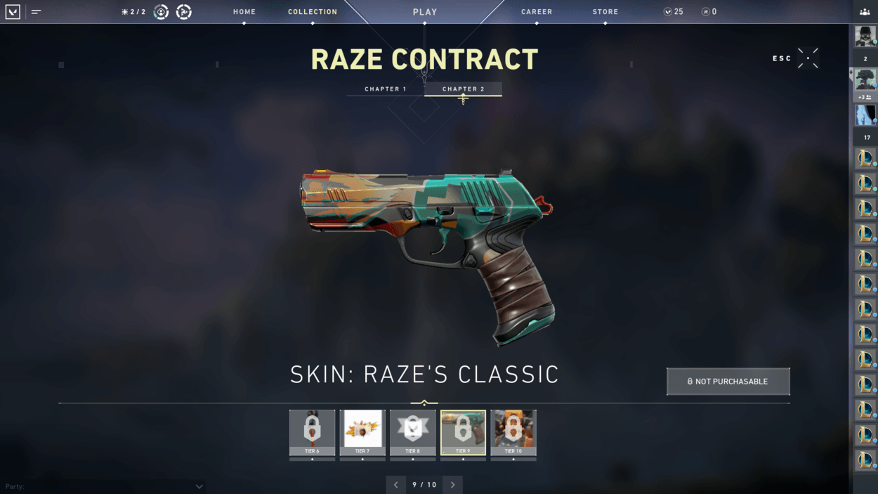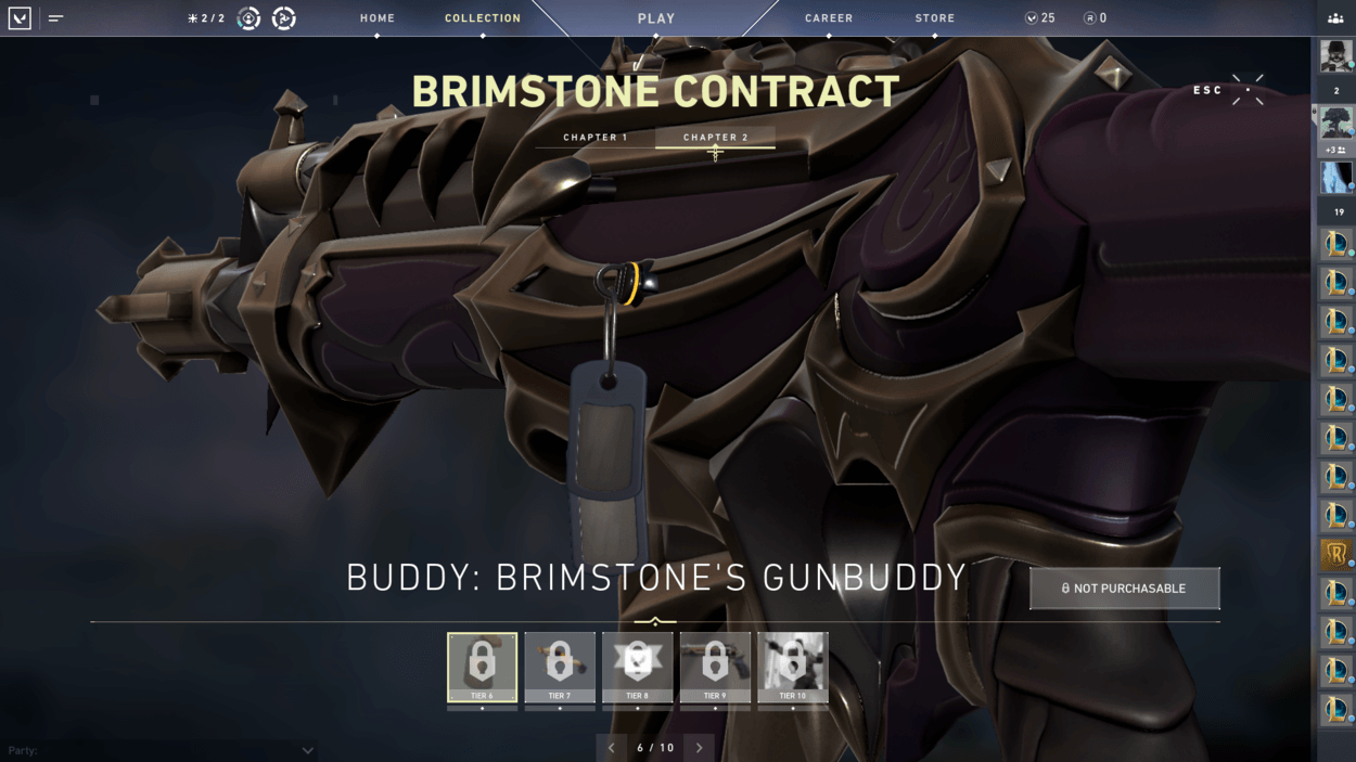 So, you finished the starter series contract and unlocked two more characters? You also finished the closed beta rewards set? Well, have you noticed players on your team with pistol cosmetics or gun buddies that you haven’t seen in the store? That’s because there are additional contracts for each agent that reward you exclusive cosmetics! For free! There are ten tiers for each agent, including a gun buddy at tier 6 and an exclusive pistol skin at tier 9.
