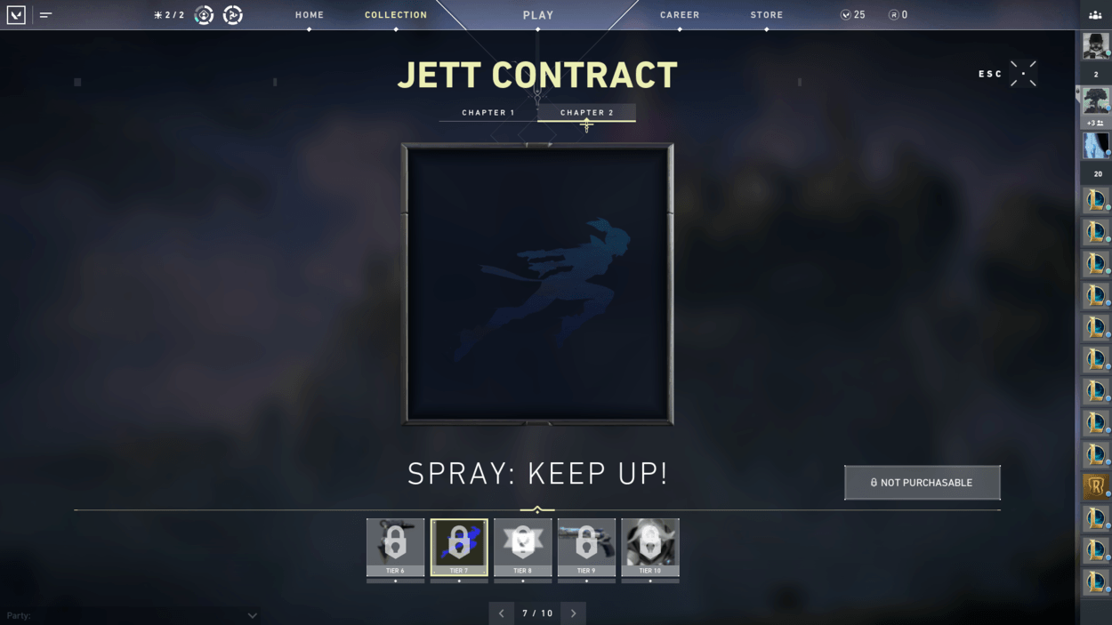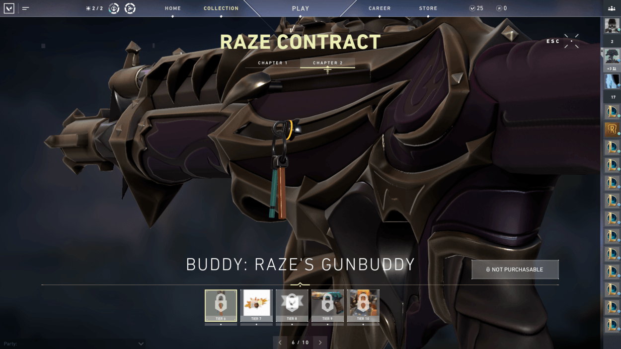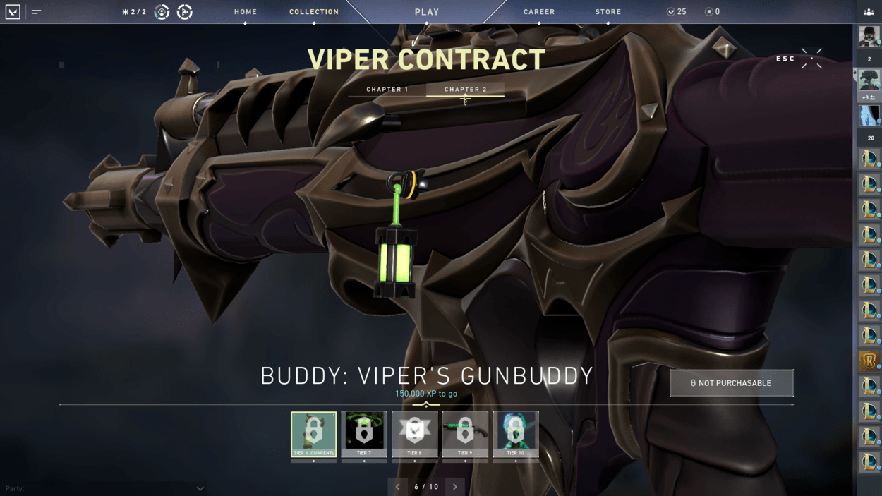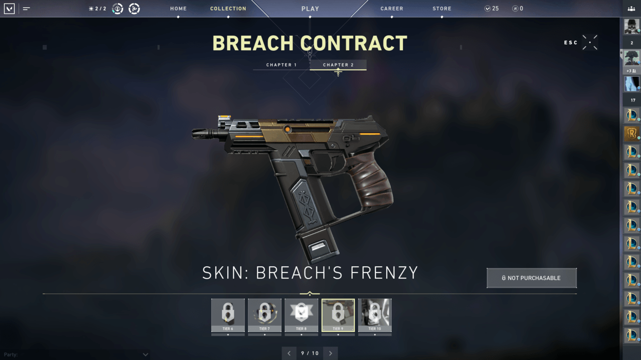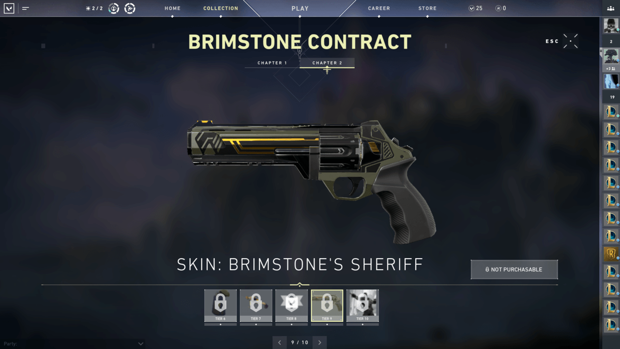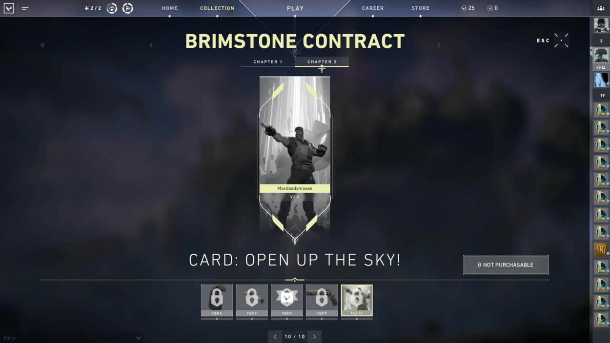 So, you finished the starter series contract and unlocked two more characters? You also finished the closed beta rewards set? Well, have you noticed players on your team with pistol cosmetics or gun buddies that you haven’t seen in the store? That’s because there are additional contracts for each agent that reward you exclusive cosmetics! For free! There are ten tiers for each agent, including a gun buddy at tier 6 and an exclusive pistol skin at tier 9.