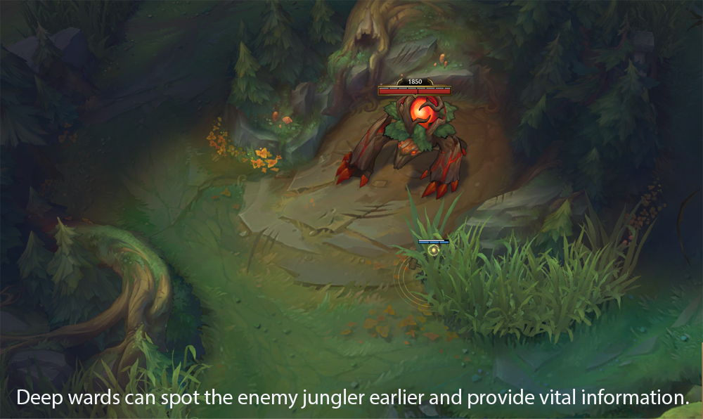 Whenever supports and their ADC have lane priority and are farming under the enemy’s turret, some supports tend to default to lazy wards, such as warding the river bush or the tri-bush. But those wards will not save you from a Hecarim or Rammus running at the speed of light with Ghost activated. Instead, make full use of your lane priority, you could opt for deeper wards such as warding further up the river nearer to mid. If you are playing someone like a Pyke or a Bard who can disengage and run away easily, consider going into the enemy jungle and placing a deep ward down at their Red Buff. These wards are extremely powerful as they can help you to spot the enemy jungler far in advance, giving you and your ADC plenty of time to retreat. It could also indicate where the enemy jungler might be on the map.