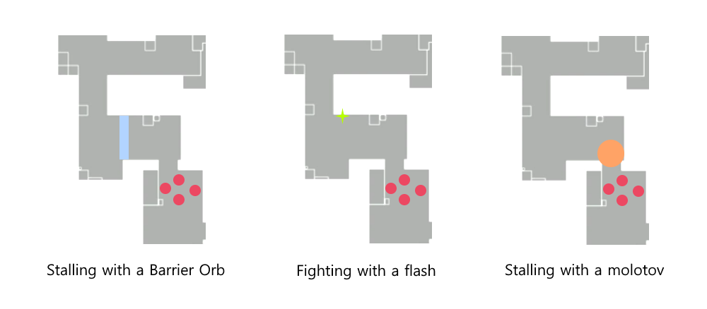 Likewise, you can use this concept against your enemies. If you notice a team lacks Controllers and Sentinel-type utility, you may consider executing quickly before they are able to stall.