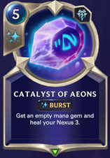 There are also strategies that focus on speeding up your mana curve faster than normal using “ramp” spells and units like Catalyst of Aeons. In that way, you can gain access to much stronger units and spells, cheating your mana gems and overwhelming Tempo advantage with your opponent's board, sacrificing most of your early game for a bigger payoff.