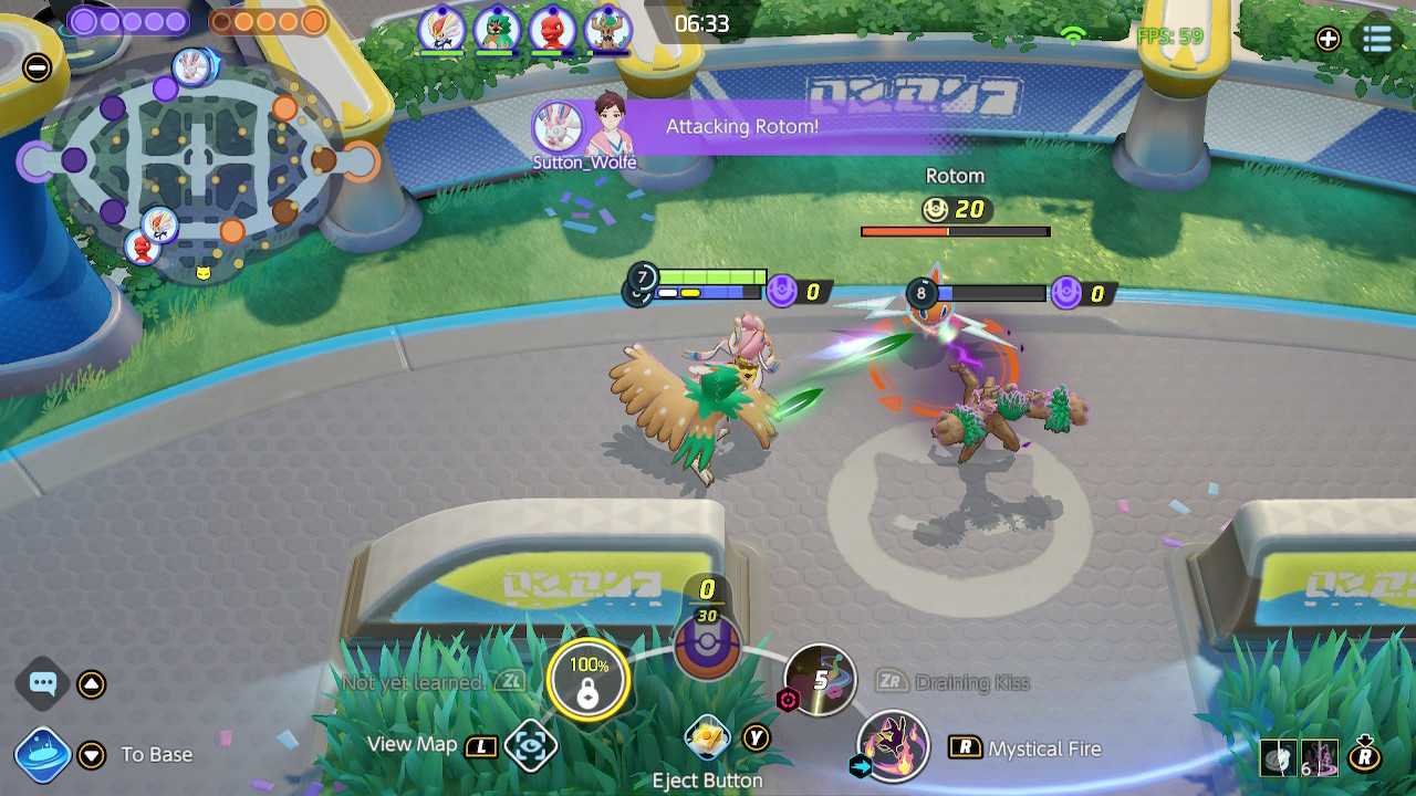 Continuing with the trend of communication, one of by far the most pivotal concepts to learn in a team game such as UNITE is objective control. Learning to properly set up and secure an objective with as little risk as possible is crucial to gaining momentum in the game, whether it’s a simple early push or a coordinated strike on Zapdos. For starters, take advantage of the fact that the game’s mini-map will inform all players when Rotom, Drednaw, and Zapdos are about to spawn. Even beyond that, however, learning the objective timers themselves will allow you to plan out your strategy that much more leading up to the climactic moments. For example, Rotom and Drednaw will both spawn simultaneously at the seven-minute mark of the game and will each respawn exactly two minutes after their respective defeats. Zapdos, meanwhile, always spawns exactly once, precisely at the two-minute mark of the contest.