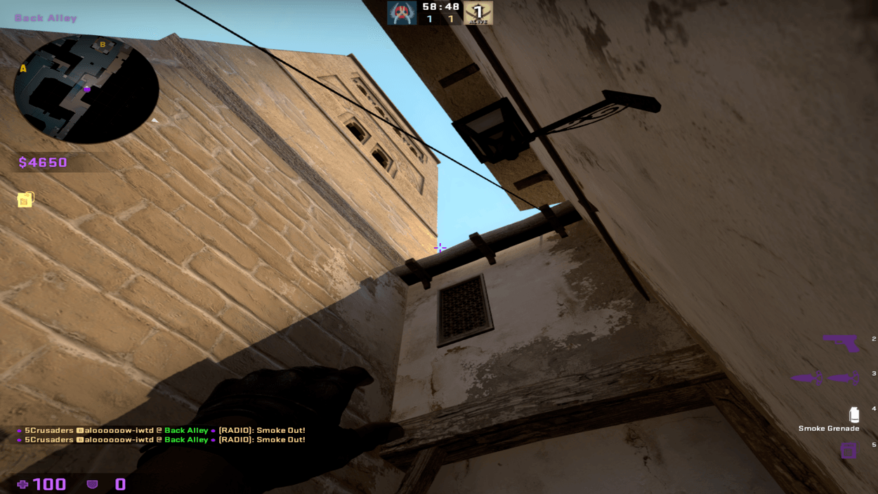 When you push Mid, you have many angles that you need to be aware of such as Window, Cat, Lower Mid, etc. You can use this smoke in collaboration with the Window smoke I showcased earlier to isolate a pick onto Cat early on in the round. To do this smoke, you have to stand by the pole on the wall on the way up to Mid. Then, you need to align your crosshair slightly to the left of the TV antenna and jump throw the smoke. This will make taking Mid control much easier so that you can secure Mid, push a site, and win the round.
