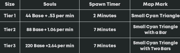 The higher the tier the stronger and beefier the Denizens are, and the more Souls they drop. So, Small Camps contain the weakest Creepers and are easy to defeat but the Soul reward is also less. On the other hand, Large Camps have the strongest Creepers that deal a lot of damage and have a lot of health, but defeating them grants a lot of Souls.