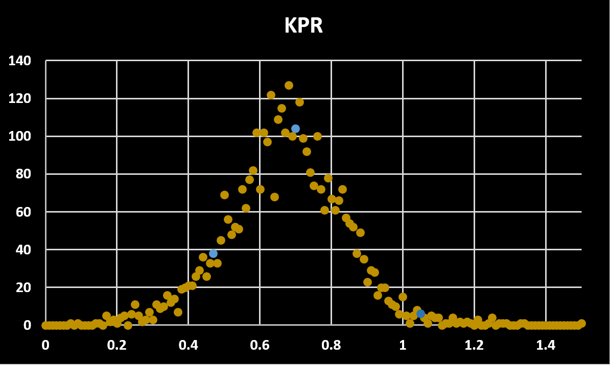 The mean value is 0.67 KPR, meaning that the average player gets about 2 kills per 3 rounds. So if you’re doing better than that in your games, good job!