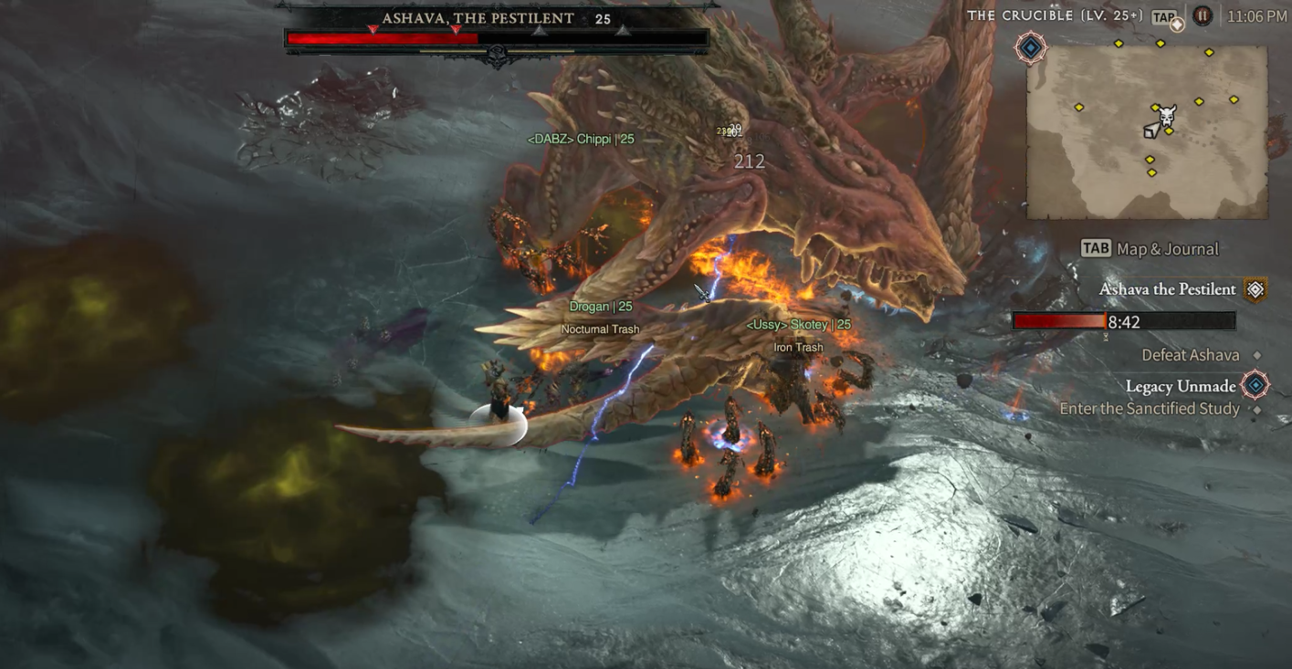 Regarding the fight itself, I unfortunately could only experience it on Sorceress and Necromancer due to the limited spawns of Ashava. For these two classes, the fight was unfairly easy, as I was able to damage the boss from far away avoiding most of its mechanics. I can only imagine how frustrating Ashava would be as a Barbarian or Druid with how unfriendly the mechanics seemed for melee.