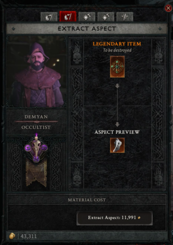 Items in this game function similarly to those in Diablo III. Legendary items possess unique effects that augment character powers, which are now referred to as Aspects. Aspects are stored in the Codex of Power and can be collected through various activities, such as completing dungeons. These effects can then be applied from the Codex of Power to Rare or Legendary items at the Occultist. Aspects can also be extracted directly from Legendary items, which are then stored in your inventory for one-time use. Additionally, players can enhance their items by upgrading and enchanting them to increase Item Power and stats. Gems essentially function the same as they did in Diablo III.